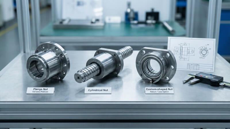 Choose from flange, cylindrical, or custom-shaped nuts with variable preload settings, return tube options, and specialized mounting patterns for direct integration.