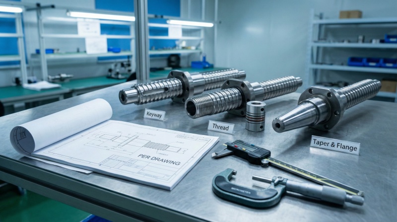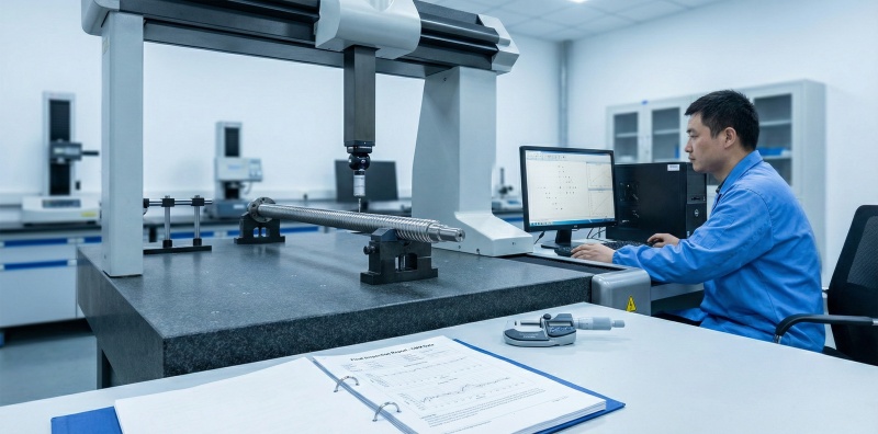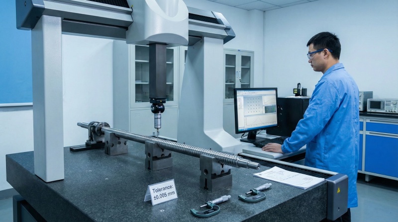 Coordinate measuring machines verify lead accuracy, pitch error, and straightness to ±0.005mm tolerance, confirming geometric specifications match design requirements before assembly.