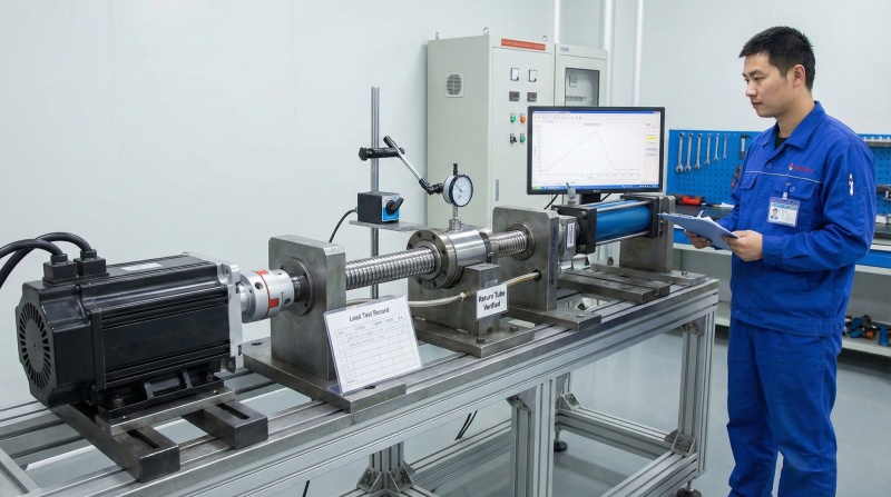 Dynamic load testing under rated conditions validates thrust capacity, preload maintenance, and nut return tube functionality, ensuring reliable performance under operational stresses.