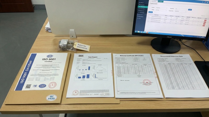 ISO 9001 certified manufacturing with complete test reports, material certificates, and dimensional inspection data provided with every order for traceability and compliance verification.
