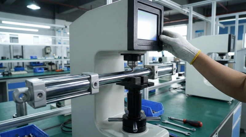 Rockwell hardness testing validates piston rod chrome plating achieves Rc 60 minimum, confirming scratch resistance needed for long-term operation in abrasive environments where surface damage accelerates seal failure and causes premature replacement costs.