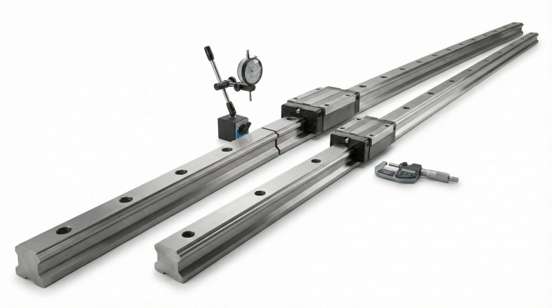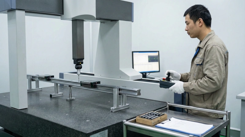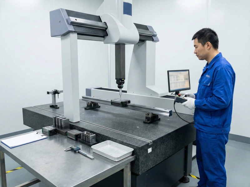 CMM measurement validates straightness, parallelism, and dimensional accuracy against tolerance specifications. Each rail is certified to its stated precision grade through documented inspection