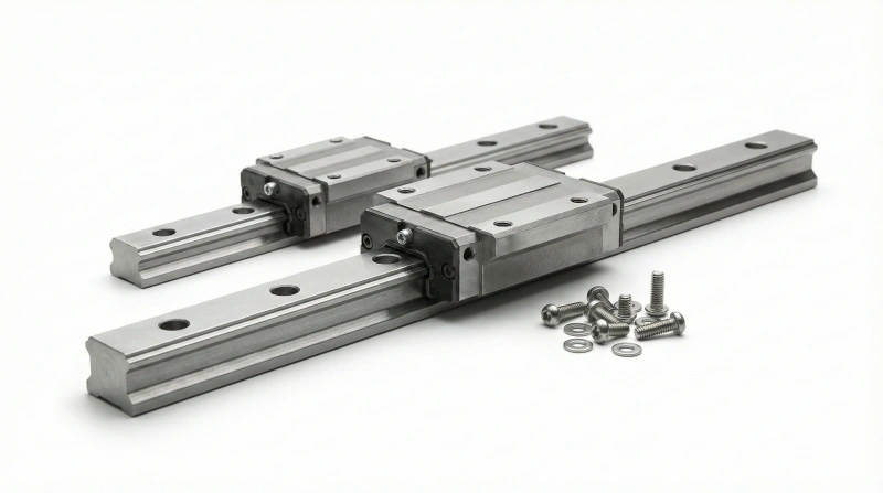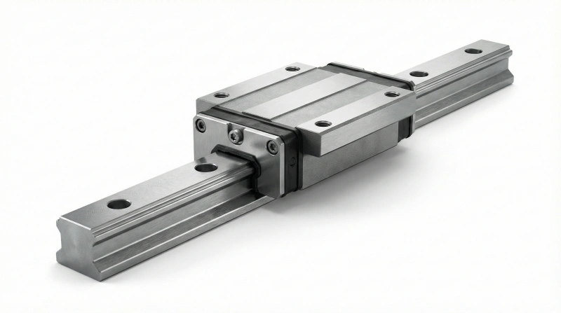 A linear rail system combines a precision-ground rail with ball-bearing sliders. The rail provides a straight guideway while sliders move along it with minimal friction, enabling repeatable positioning accuracy down to microns for demanding applications