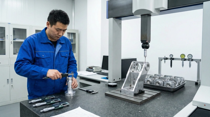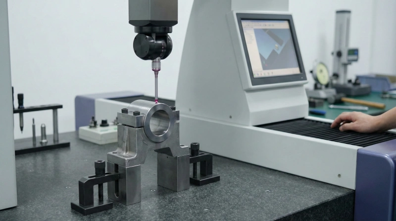 CMM verification confirms bore diameter, mounting hole positions, and overall dimensions match specifications within ±0.01mm tolerance.